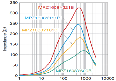 磁珠的阻抗是噪声抑制的关键参数,怎样选择合适阻抗的磁珠容易被忽略。有时错误的认为阻抗越大越好,600ohm阻抗的磁珠一定比220ohm阻抗的磁珠噪声抑制效果好,其实并非如此。
